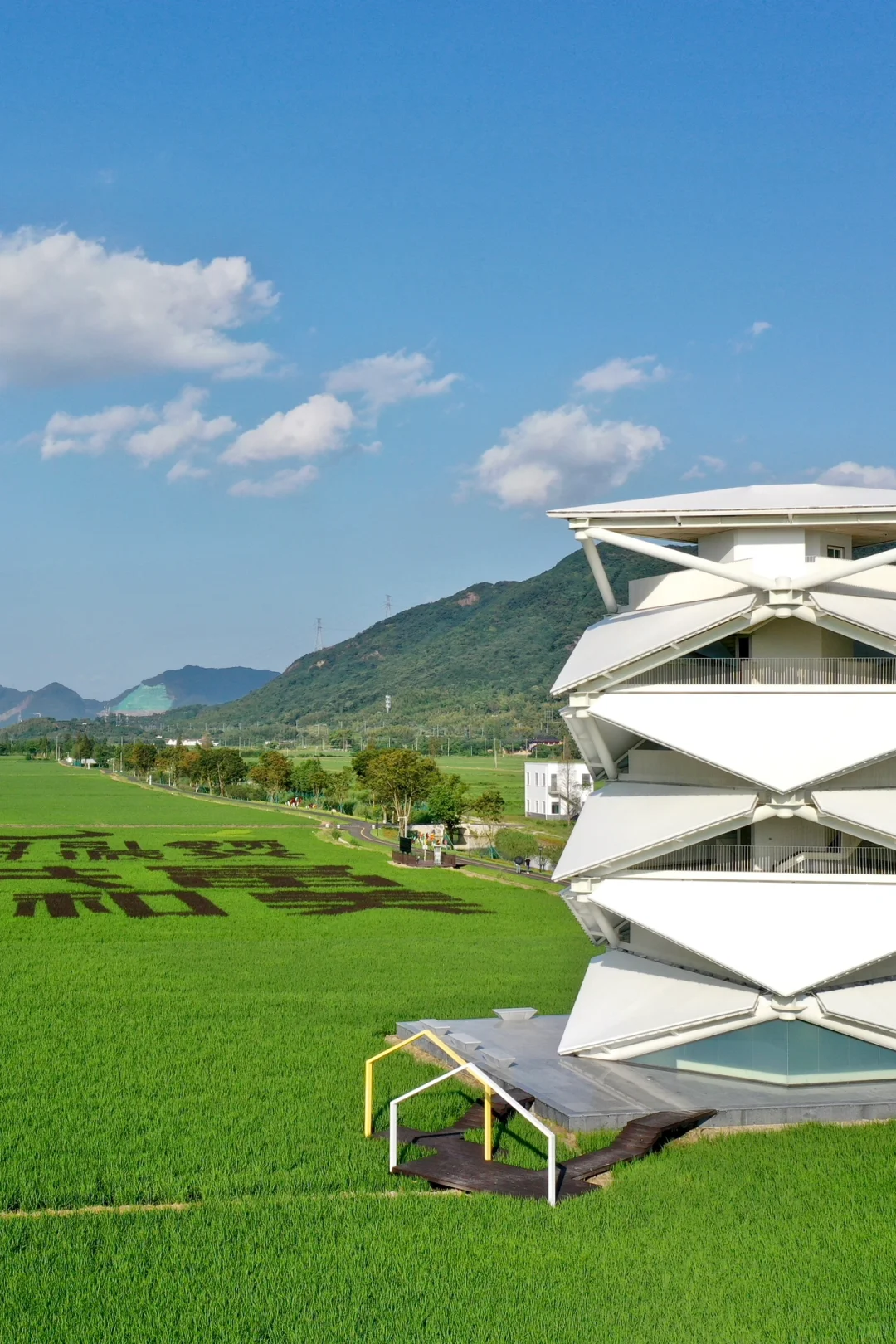 白色螺旋塔身科技感十足,登高远眺,连片田园风光尽收眼底,是春日观景、拍照打卡的优选。逛累了就在这里休憩赏景吧~