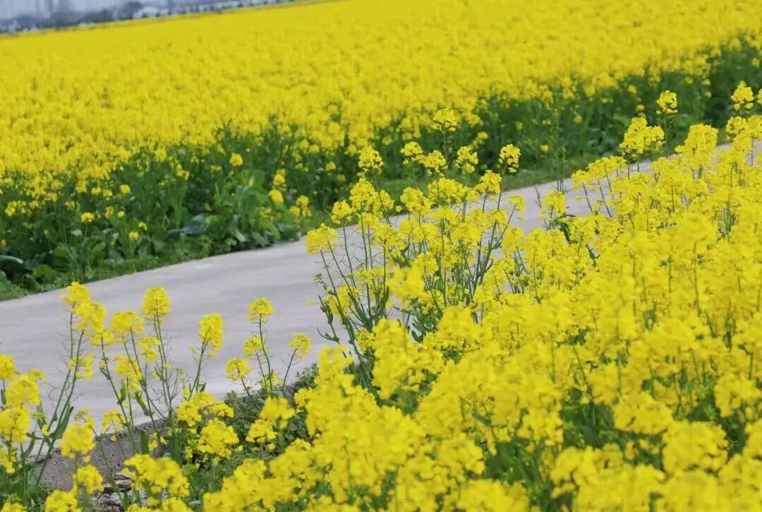 不同于城市公园里的精致花田,这里的油菜花有着纯粹的田园野趣。蜿蜒的田埂缠绕着无边无际的金黄,脚下是松软的泥土,身旁是盛放的花海,治愈感拉满。