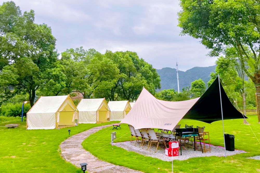 这里是火车主题的网红露营地,远处悠悠驶过的列车搭配眼前的开阔草坪,松弛感满满。搭起天幕、架起烤炉,你可以一边晒太阳一边野餐,感受田园的轻松与惬意。