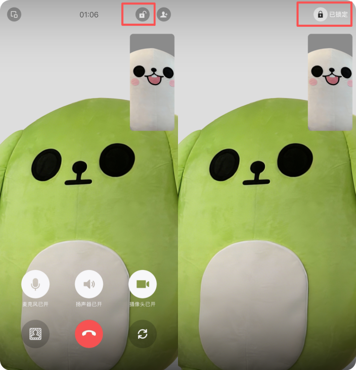 有些时候视频聊着聊着就不见了,可能是误触点了挂断。现在,微信视频时点击右上角🔒图标,可锁定屏幕。该功能正在逐步放量中。