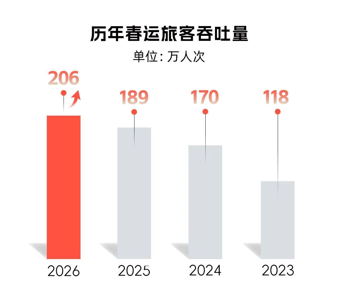春节假期九天累计运送旅客超50万人次,日均约5.6万人次,日均客流量同比增长12.2%,平均每天运送一个“2025单日客流最高峰”。