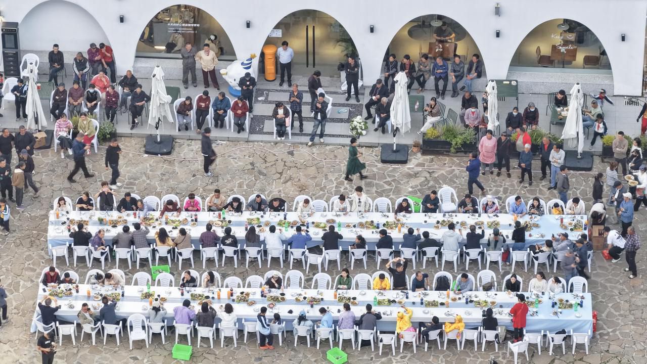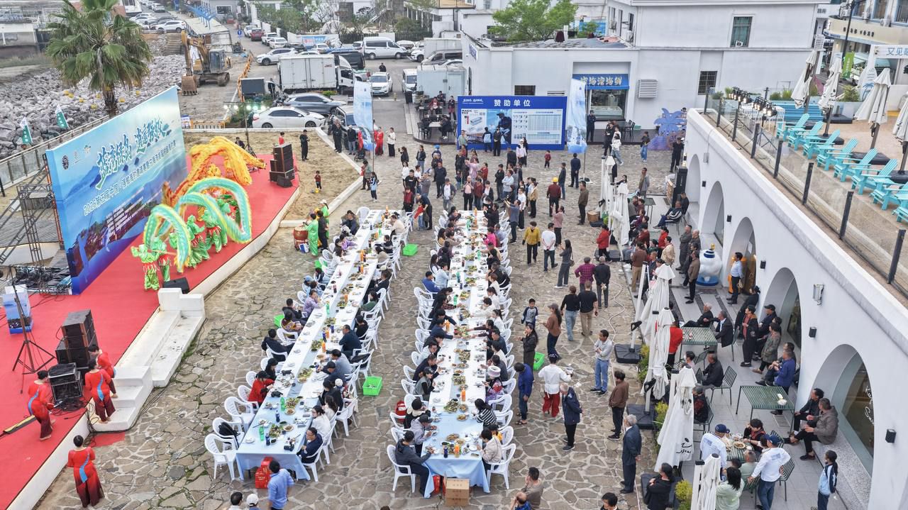 “出锅喽!”傍晚时分,长桌宴现场座无虚席,市民与游客围坐一堂,共享“大锅烹鲜、长桌聚宴”的渔家风味。大家一边品尝鱼鲜美味,一边欣赏民俗展演,尽享舌尖与视觉的双重盛宴,现场欢声笑语不断。