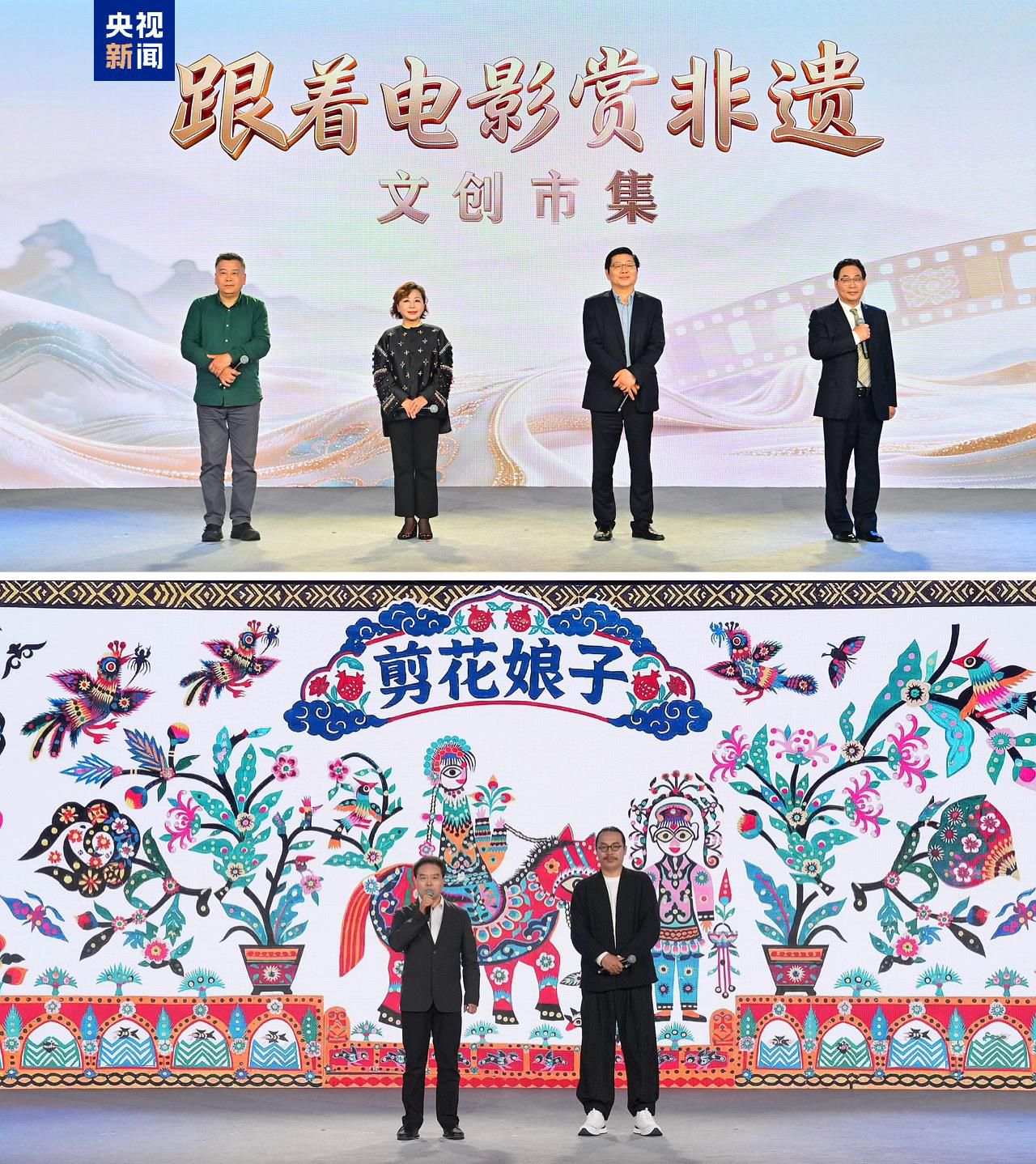 活动现场“跟着电影赏非遗”推介环节,来自北京、杭州、宁波和南京的四位国家级非遗项目的代表性传承人分享感受,期待非遗在光影流转中焕发新生。陕西非遗题材电影《剪花娘子》也在现场进行了推介。