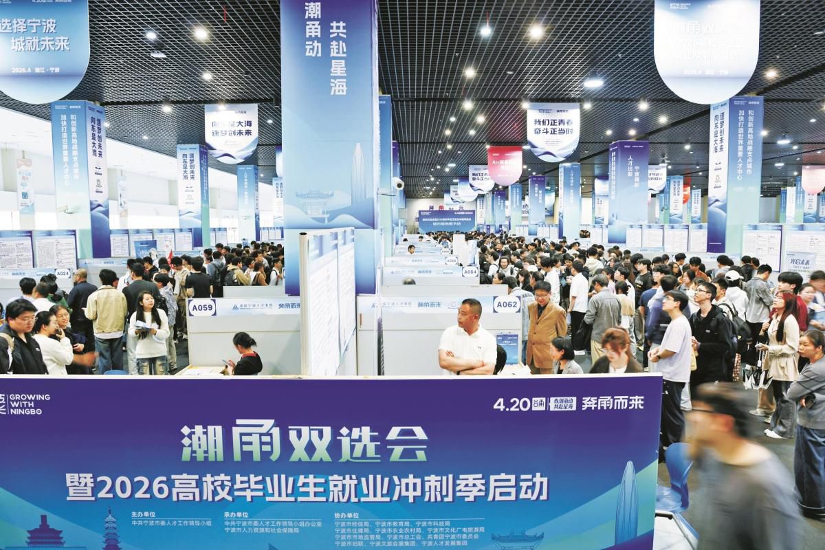 报道了19日,潮“甬”双选会暨高校毕业生就业冲刺季招聘会在宁波举行,这是宁波首场以人工智能为主题的市级招聘会。宁波将发力点锚定在新兴产业与先进制造业,通过深挖企业潜力、拓展优质岗位,有效吸引青年人才来甬、留甬。