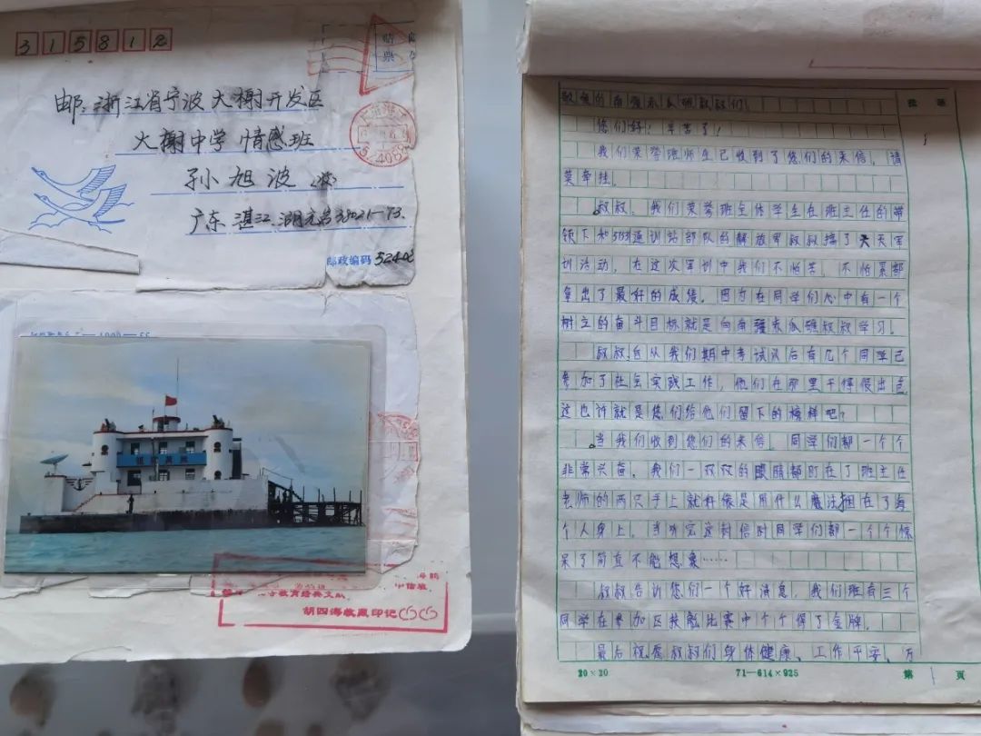报道了浙江宁波大榭中学与南海赤瓜礁远隔数千公里,数百封书信架起跨越山海的桥梁,一届届学生在信中分享成长的烦恼与喜悦,给守礁官兵送去坚守的力量。