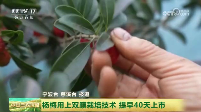4月23日,央视《中国三农报道》栏目播发《浙江慈溪 杨梅用上双膜栽培技术 提早40天上市》。