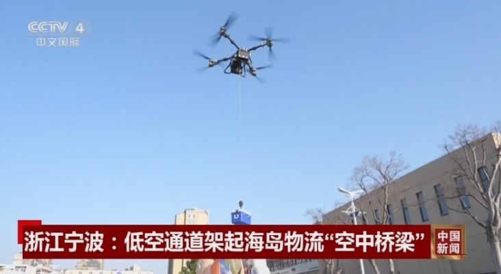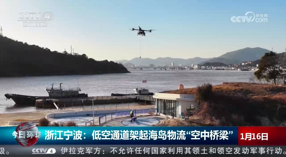 1月15日、16日,央视《新闻直播间》《中国新闻》《今日环球》栏目播出《浙江宁波 低空通道架起海岛物流“空中桥梁”》,报道了宁波首条海洋场景无人机物流航线于日前投入运营,象山海岛物流正式迈入低空时代。