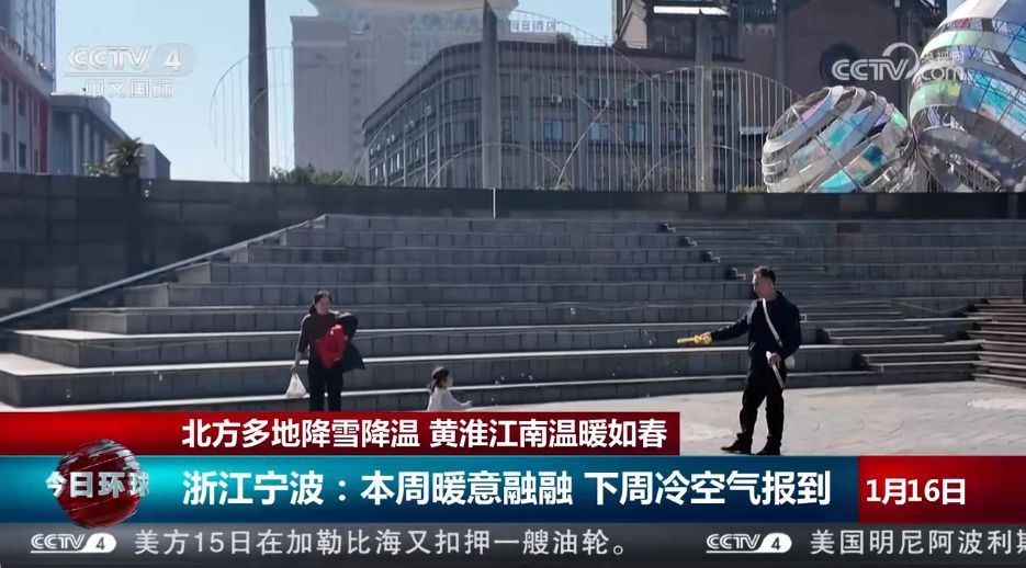 1月15日,央视《新闻直播间》《今日环球》栏目播出《浙江宁波 本周暖意融融 下周冷空气报到》,报道了宁波从1月14日开始迎来升温,大家在“三九”天里提前感受到春天般的温暖。不过,宁波市气象台表示,本轮升温持续的时间不长,下周一股强冷空气将带来大风及降水。